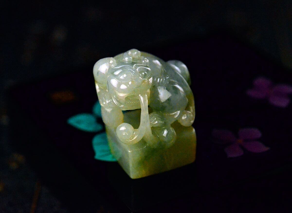 貔貅 翡翠彫刻 ペンダントトップ 根付 印材 鑑定書付