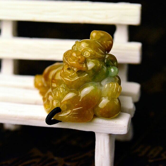 翡翠 彫刻 ペンダントトップ 根付 貔貅 鑑定書付 天然石