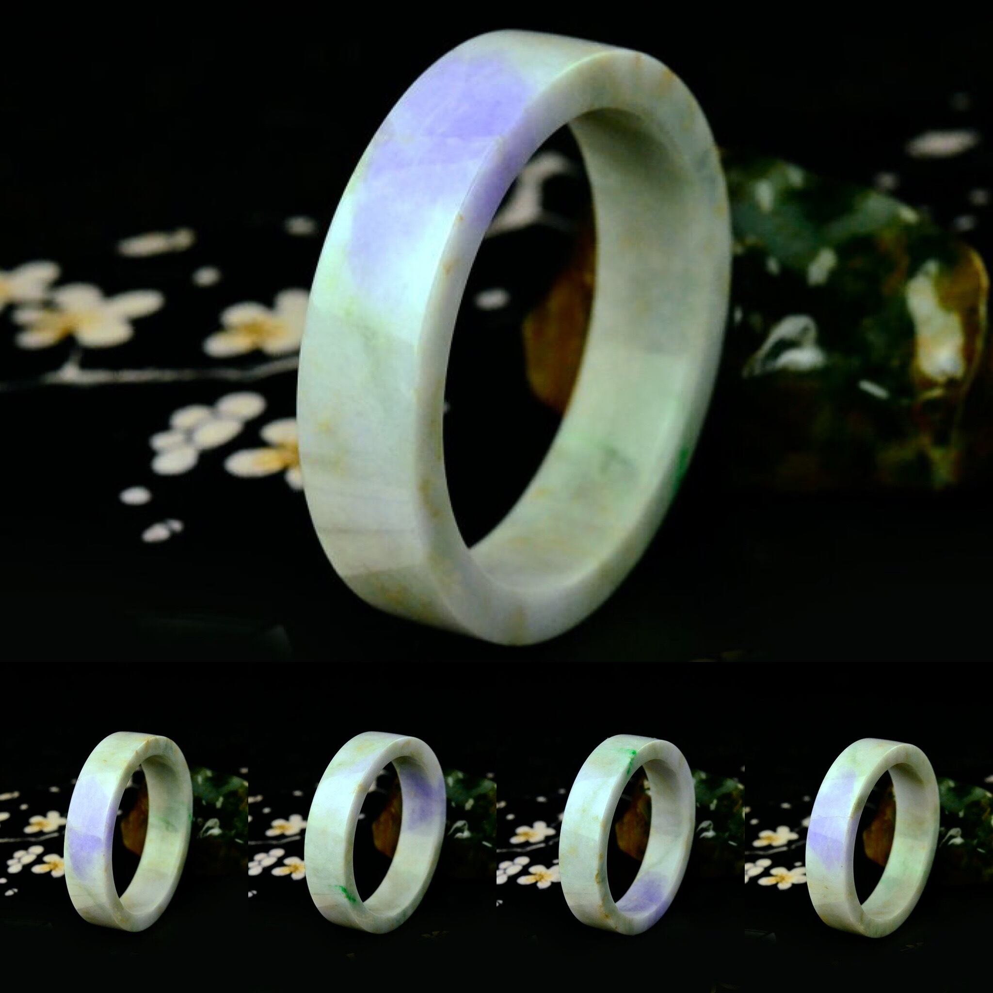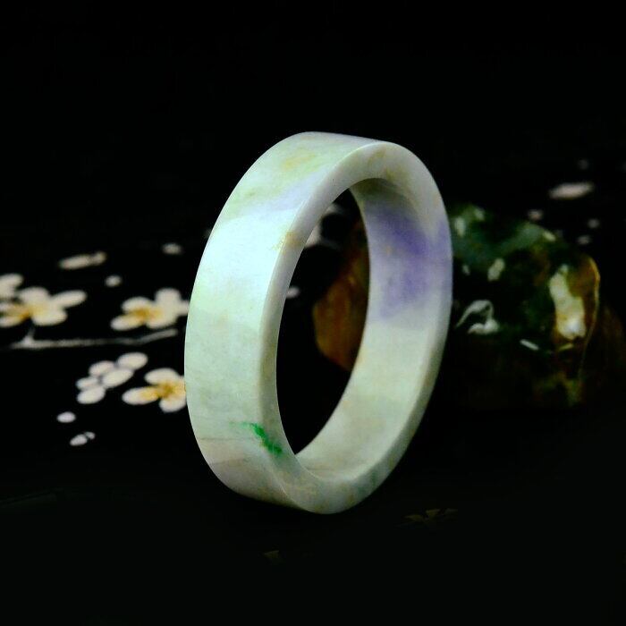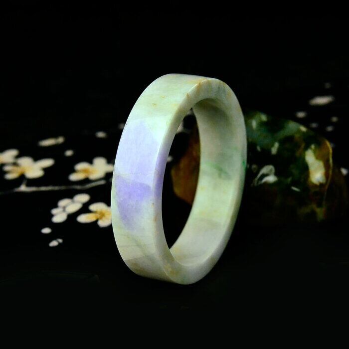 翡翠 天然石 バングル フラット ラベンダー 61mm 鑑定書付