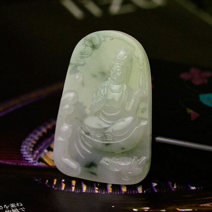 翡翠 観音様 ペンダントトップ 根付鑑定書付