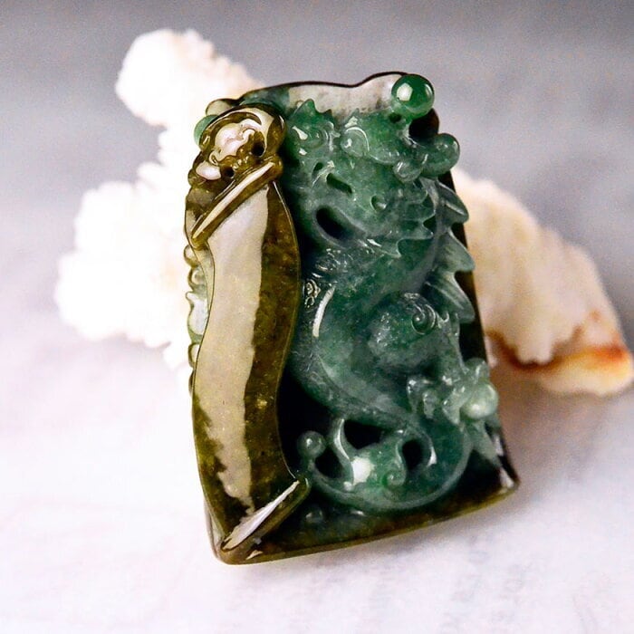 天然石 翡翠 龍 ペンダントトップ 根付 鑑定書付