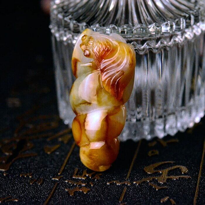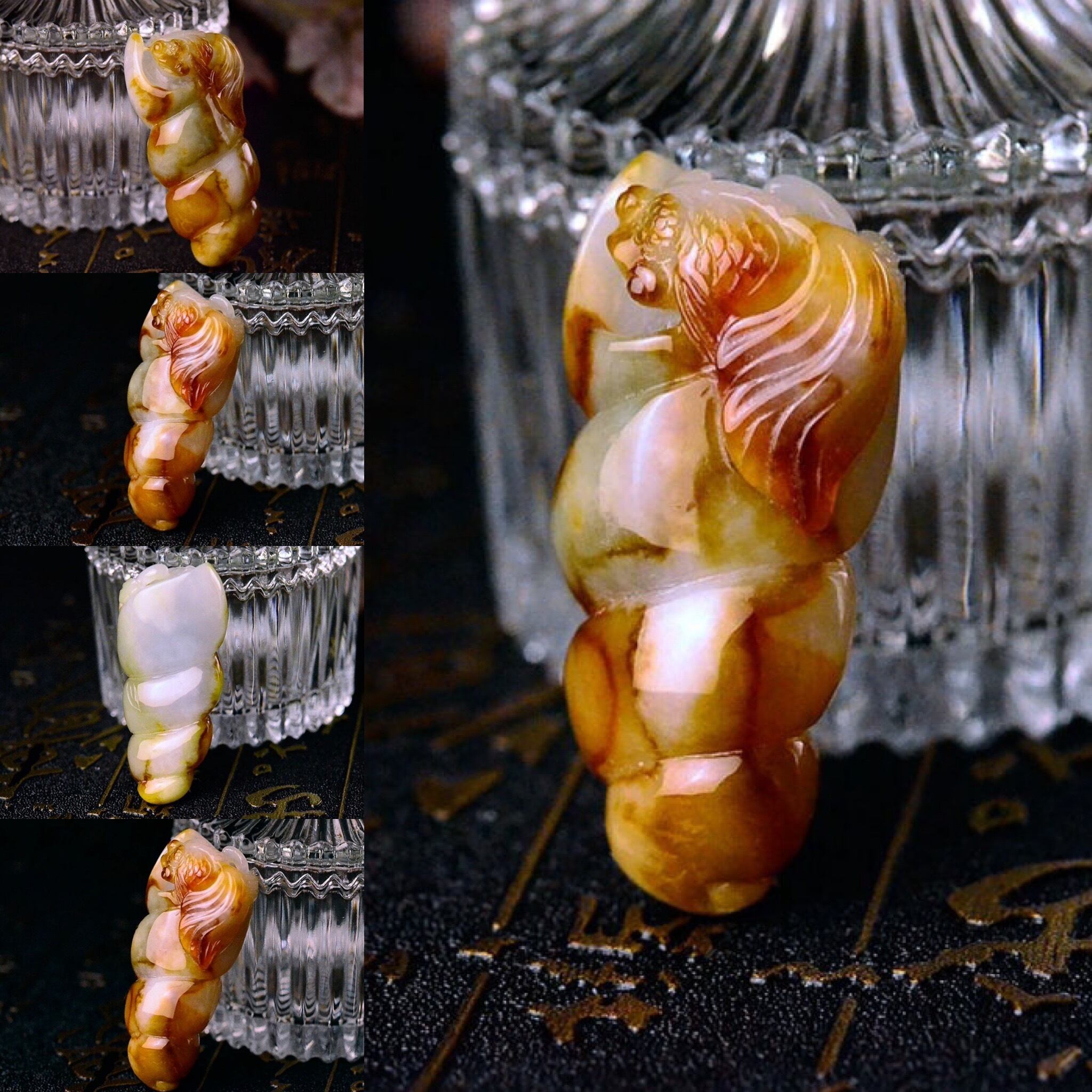 翡翠 金魚・巻貝 ペンダントトップ 根付 鑑定書付