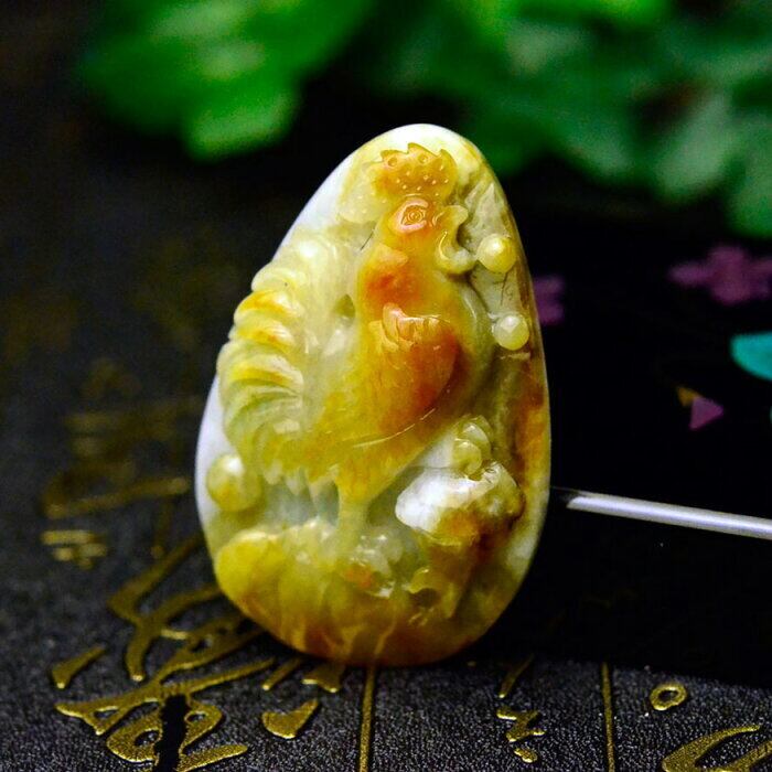 翡翠 彫刻 雄鶏 ペンダントトップ 鑑定書付