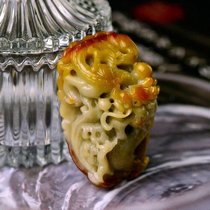 翡翠の龍 ペンダントトップ 根付 鑑定書付