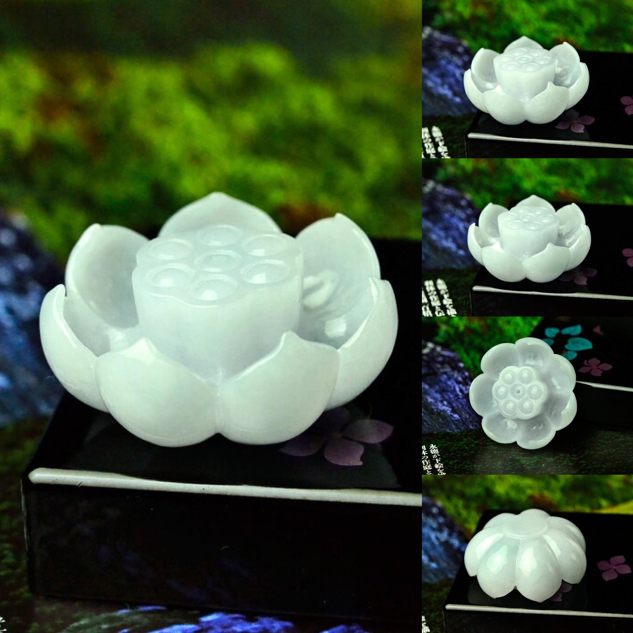 翡翠 お香立て 蓮の花 彫刻 置物 天然石