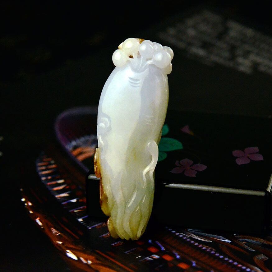 翡翠 朝鮮人参・如意 彫刻 ペンダントトップ 根付 置物