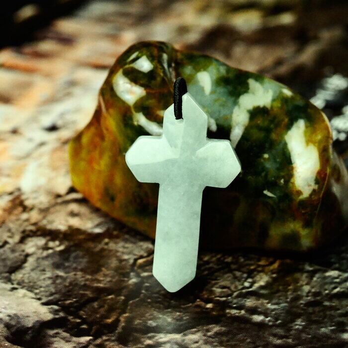 翡翠 クロス 十字架 チャーム ストラップ 淡い翠