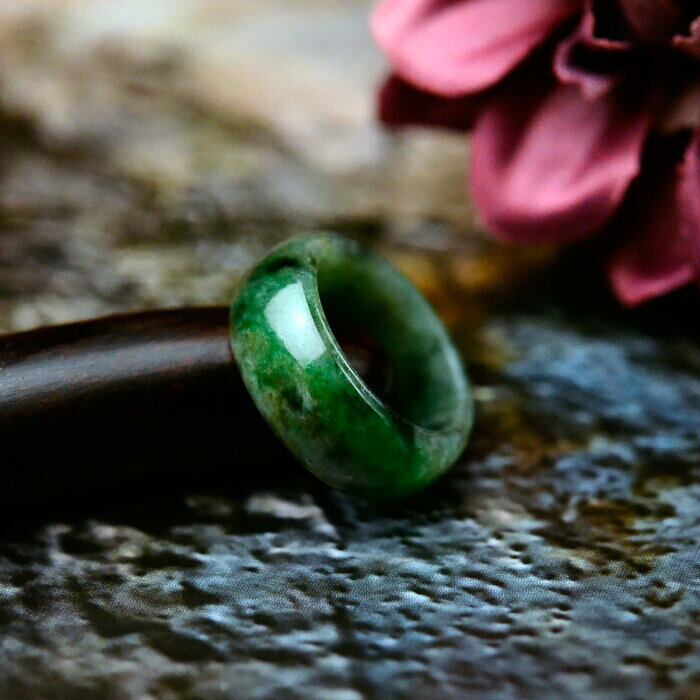 翡翠 天然石 くりぬきリング 13.5号 幅広