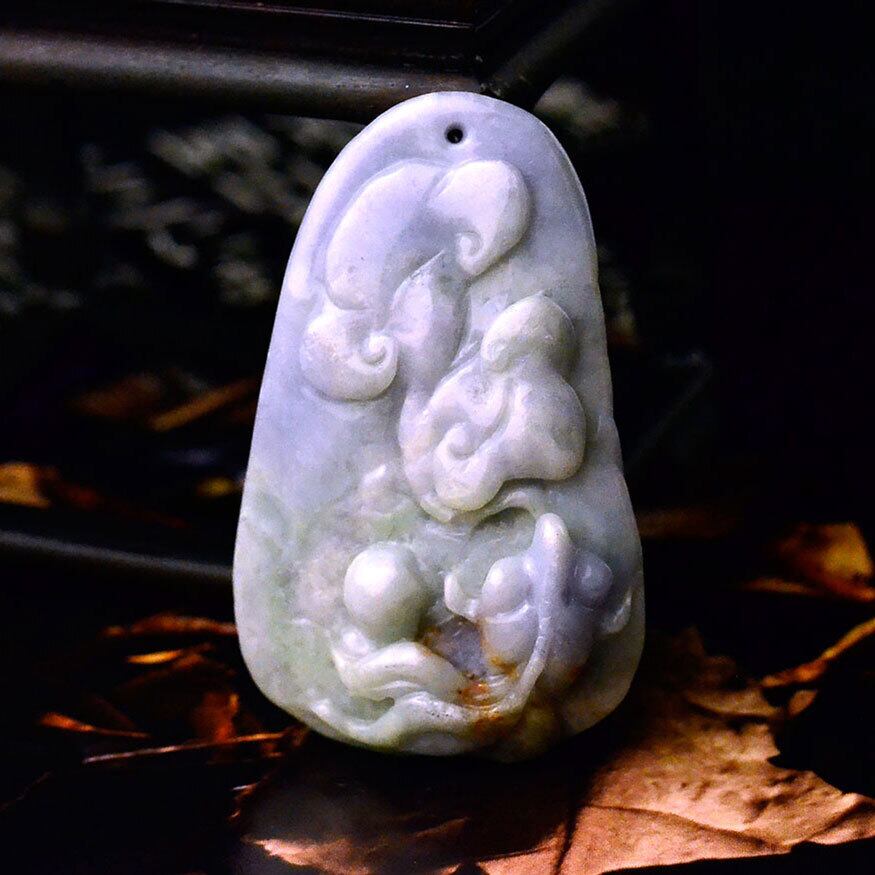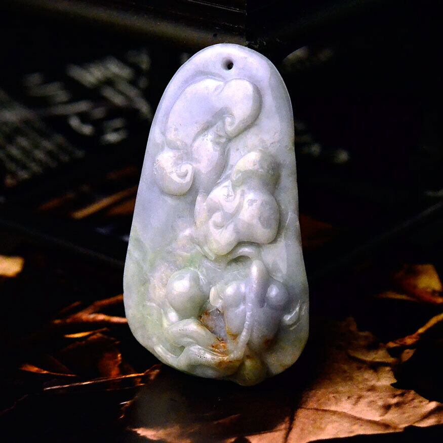 如意 金魚 ラベンダー翡翠 彫刻 ペンダントトップ 根付