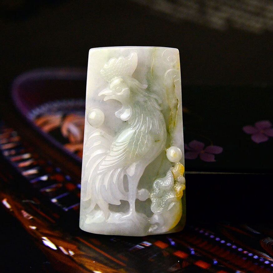雄鶏 翡翠 彫刻 ペンダントトップ 根付