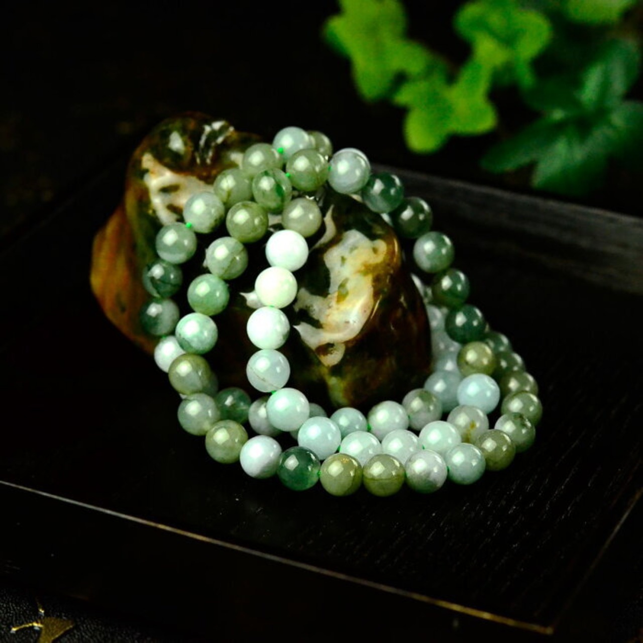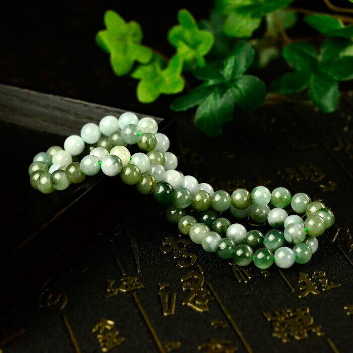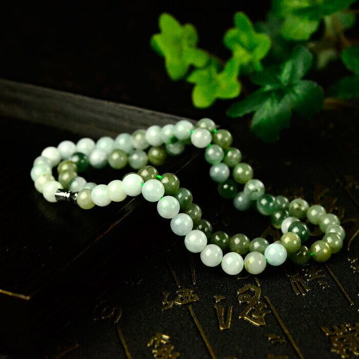 天然石 ネックレス 淡翠から翠へのグラデーション 翡翠 珠8mm 55cm nec-4