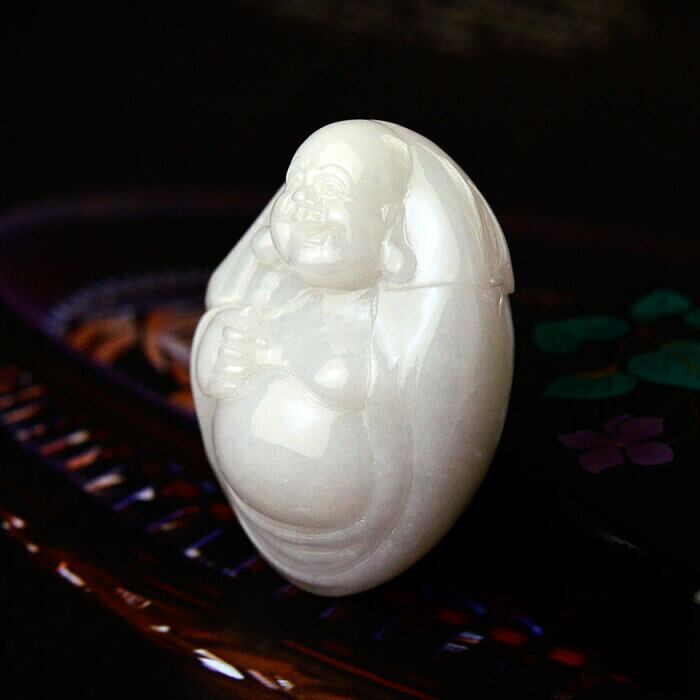 笑顔の布袋様 翡翠 彫刻 ペンダントトップ 根付 天然石